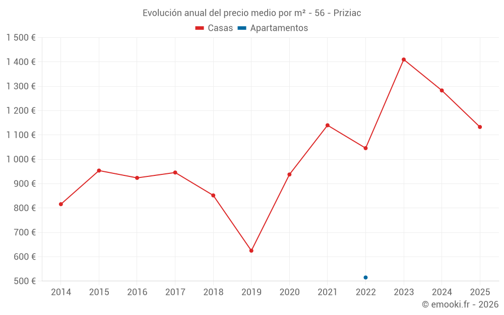 ¿Cuál es el precio por m2 de las casas en Priziac?