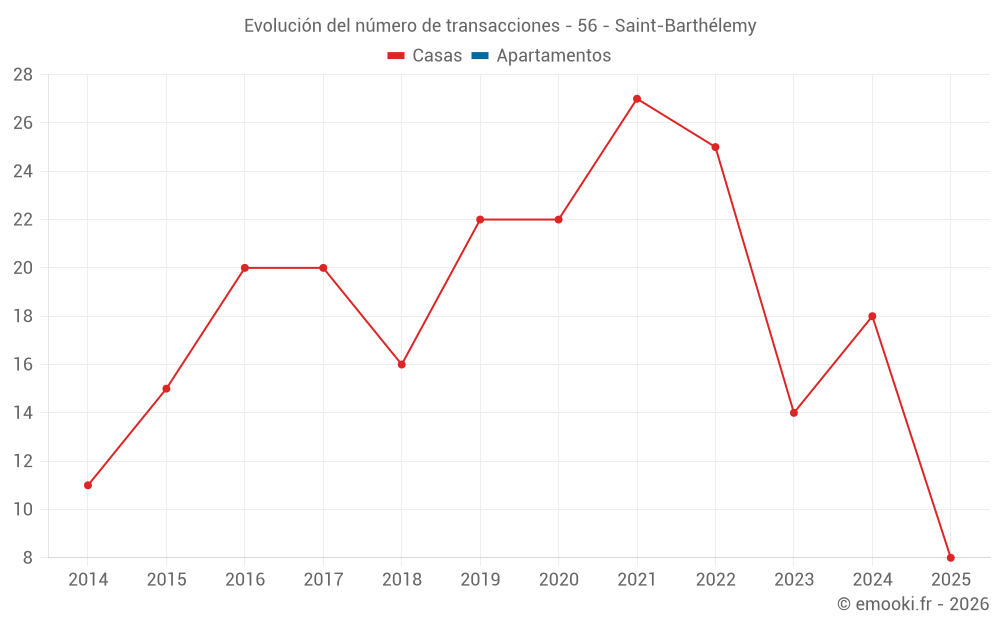 El precio mediano en las 19 transacciones de casas de los últimos 12 meses en la comuna de Saint-Barthélemy fue de 1 444 € por metro cuadrado para un valor patrimonial medio de 190 000 €. Durante este período el 60% de las transacciones estuvieron entre 1 123 y 2 184 € por metro cuadrado (del 2º al 8º decil).