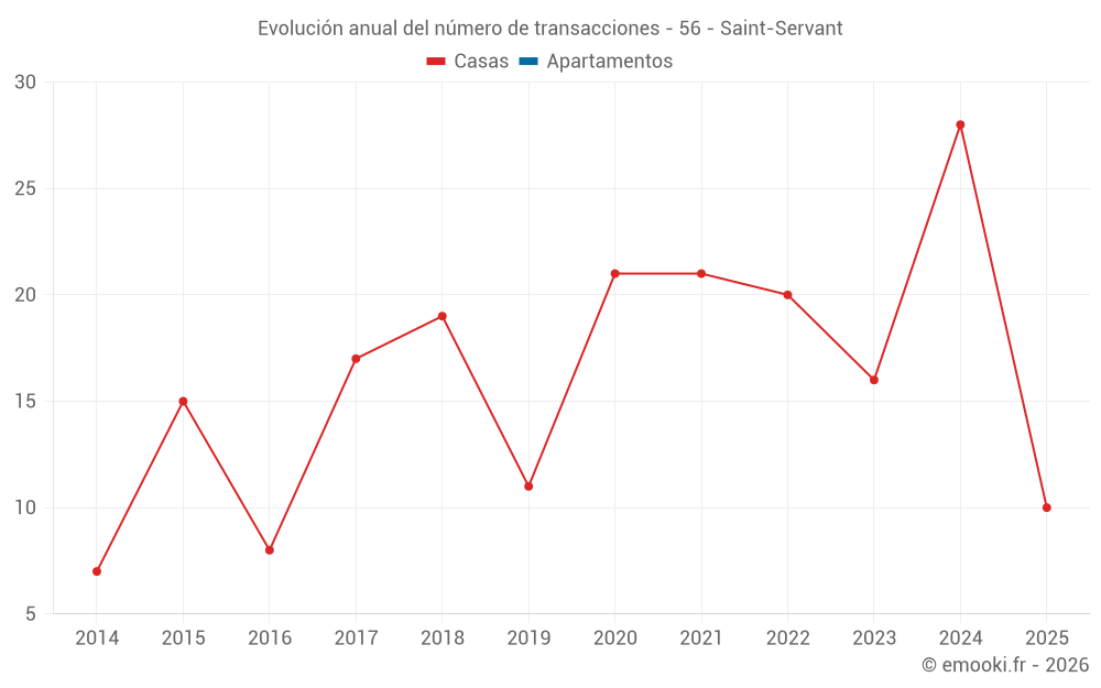 El precio mediano en las 26 transacciones de casas de los últimos 12 meses en la comuna de Saint-Servant fue de 1 178 € por metro cuadrado para un valor patrimonial medio de 107 500 €. Durante este período el 60% de las transacciones estuvieron entre 663 y 1 742 € por metro cuadrado (del 2º al 8º decil).