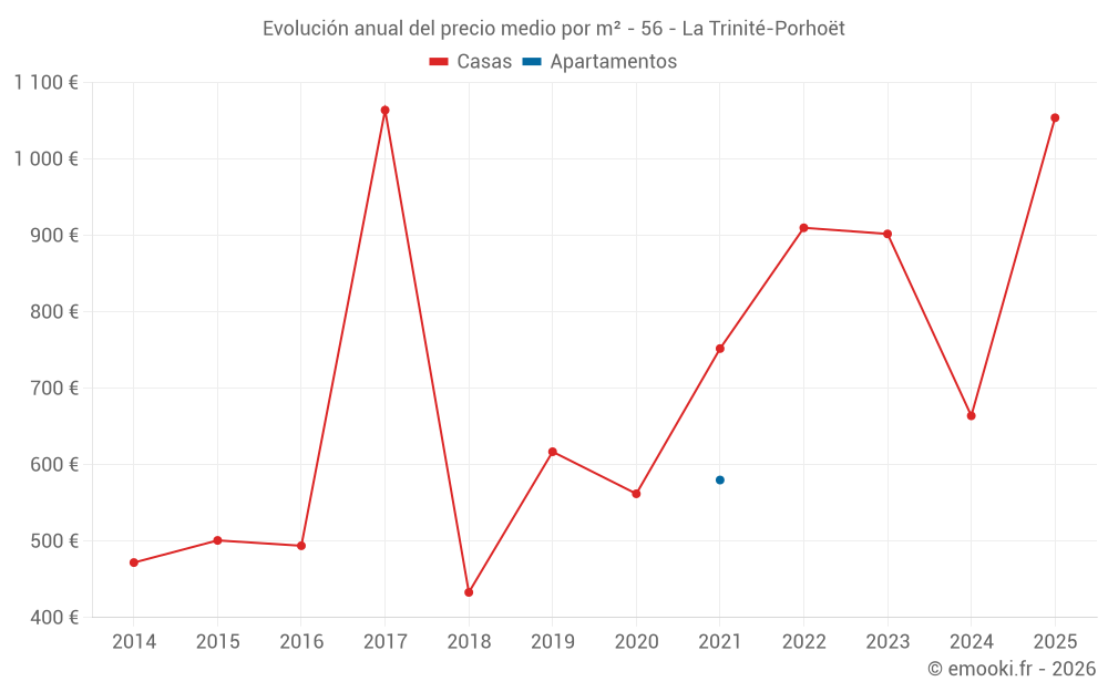 Evolución del precio medio por m² de las casas
