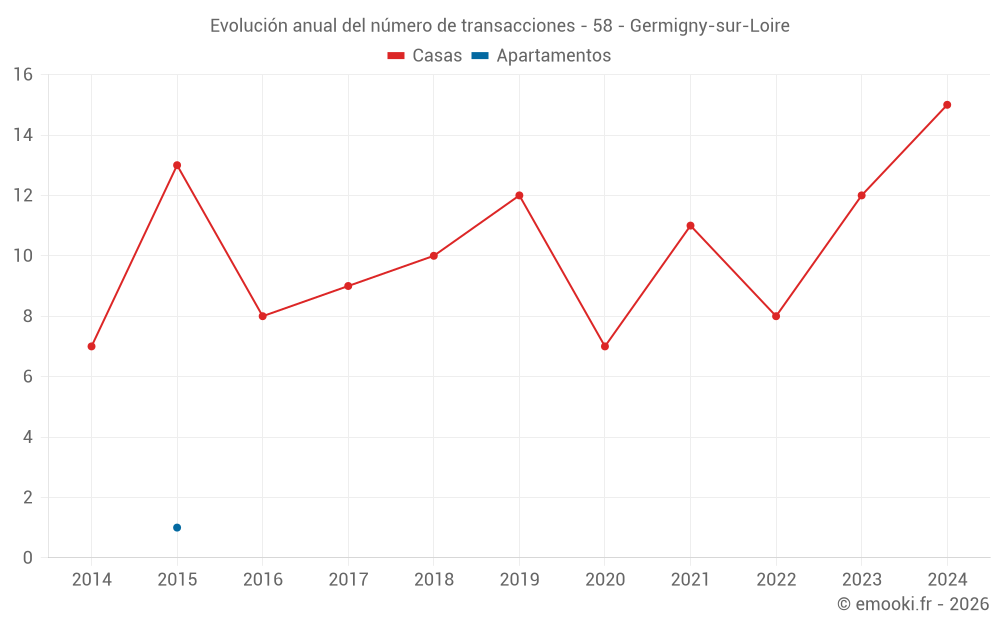 El precio mediano en las 18 transacciones de casas de los últimos 24 meses en la comuna de Germigny-sur-Loire fue de 1 292 € por metro cuadrado para un valor patrimonial medio de 137 150 €. Durante este período el 60% de las transacciones estuvieron entre 761 y 1 570 € por metro cuadrado (del 2º al 8º decil).