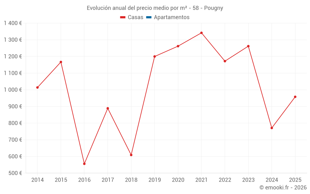 Evolución del precio medio por m² de las casas