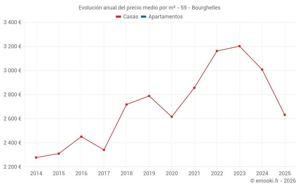 ¿Cuál es el precio por m2 de las casas en Bourghelles?