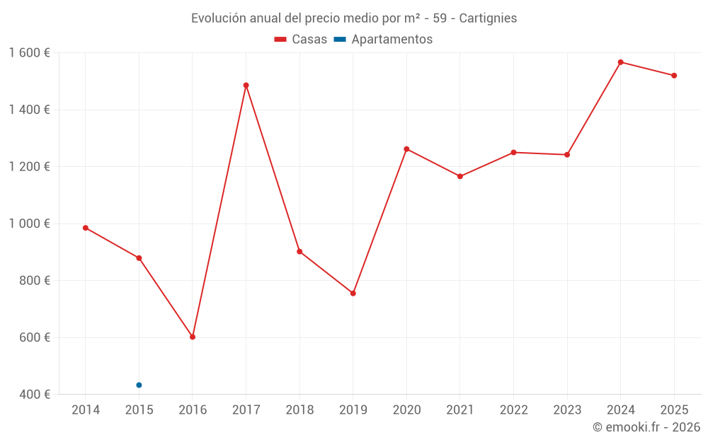¿Cuál es el precio por m2 de las casas en Cartignies?