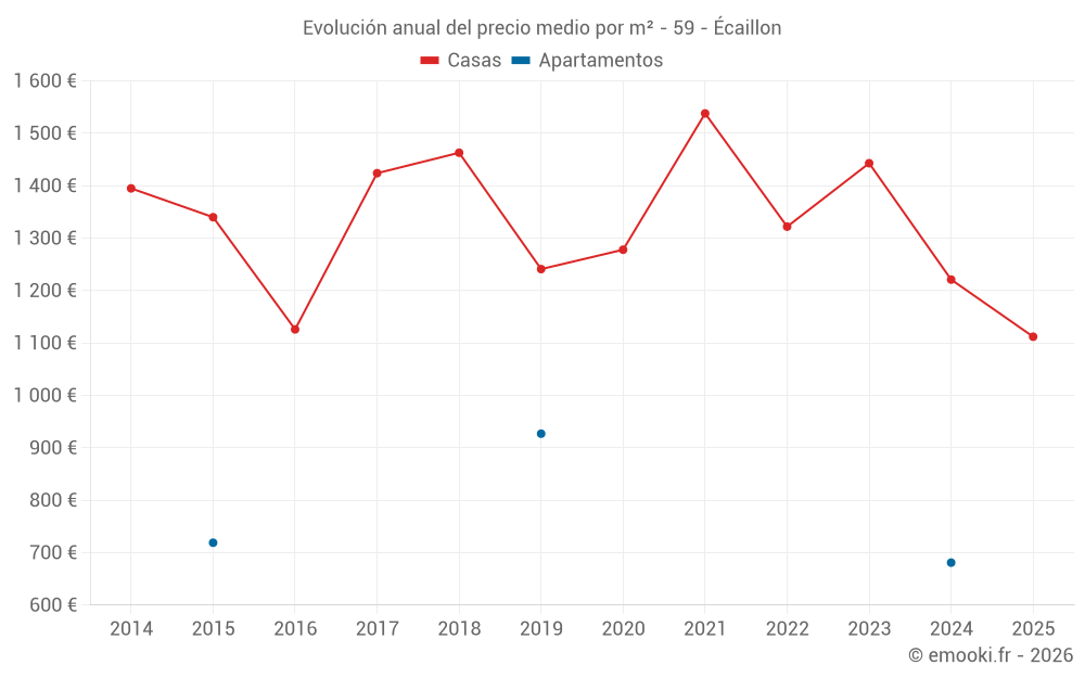 ¿Cuál es el precio por m2 de las casas en Écaillon?