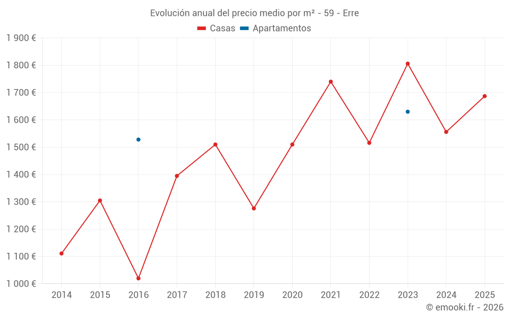 ¿Cuál es el precio por m2 de las casas en Erre?