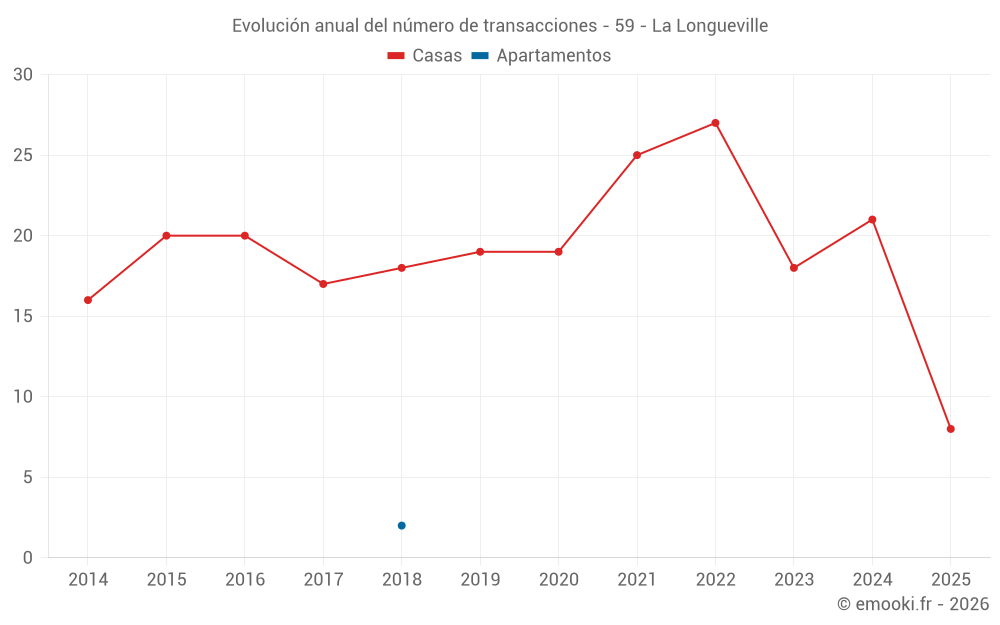 El precio mediano en las 21 transacciones de casas de los últimos 12 meses en la comuna de La Longueville fue de 1 643 € por metro cuadrado para un valor patrimonial medio de 150 000 €. Durante este período el 60% de las transacciones estuvieron entre 1 338 y 2 293 € por metro cuadrado (del 2º al 8º decil).