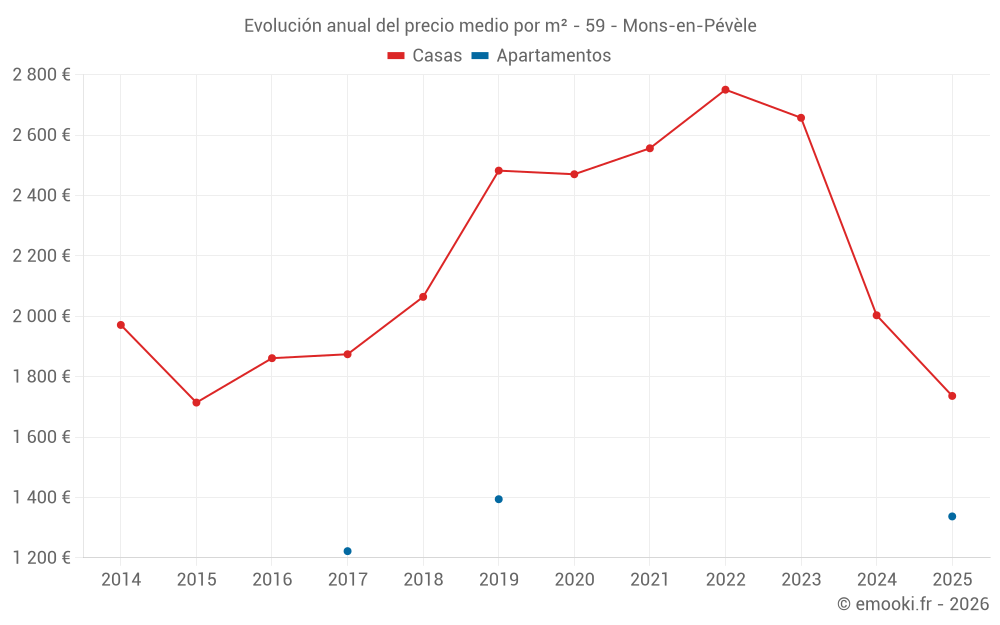 ¿Cuál es el precio por m2 de las casas en Mons-en-Pévèle?
