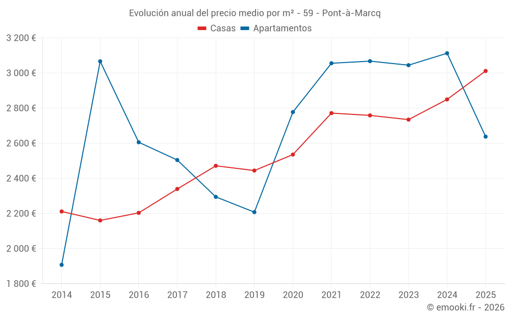 ¿Cuál es el precio por m2 de las casas en Pont-à-Marcq?