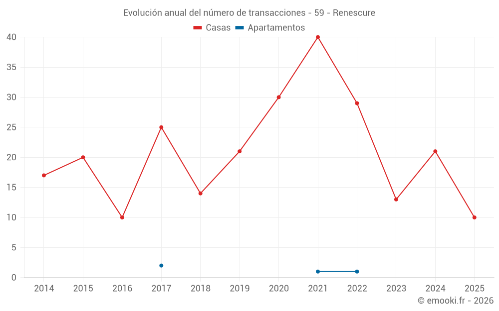 El precio mediano en las 22 transacciones de casas de los últimos 12 meses en la comuna de Renescure fue de 1 608 € por metro cuadrado para un valor patrimonial medio de 159 250 €. Durante este período el 60% de las transacciones estuvieron entre 1 322 y 2 171 € por metro cuadrado (del 2º al 8º decil).