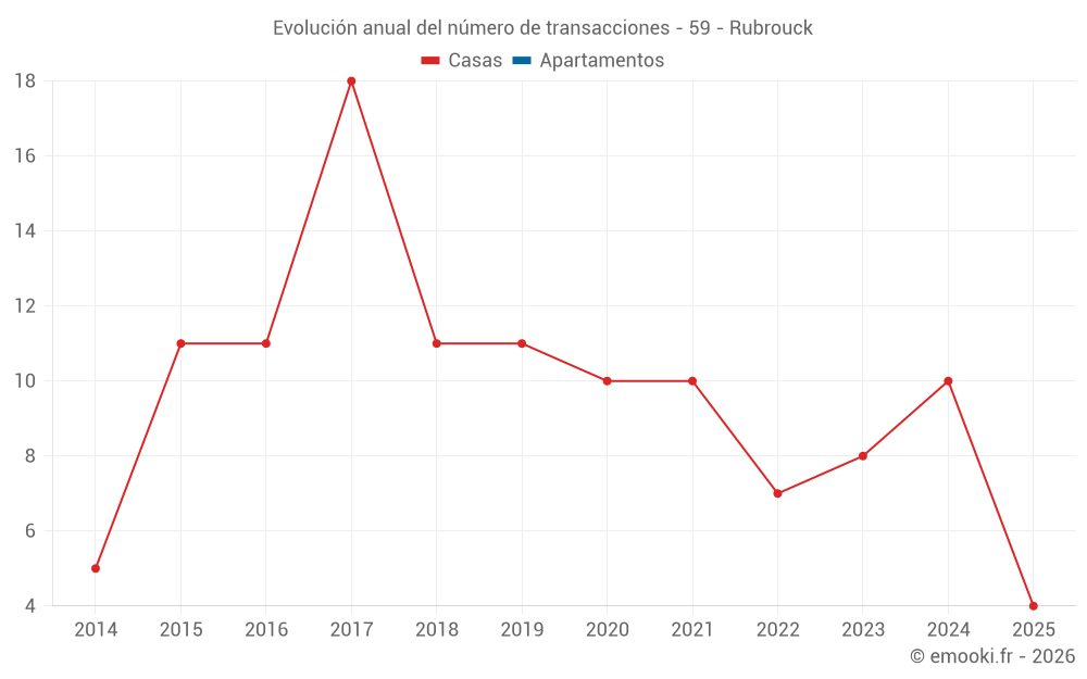 El precio mediano en las 17 transacciones de casas de los últimos 24 meses en la comuna de Rubrouck fue de 1 808 € por metro cuadrado para un valor patrimonial medio de 183 000 €. Durante este período el 60% de las transacciones estuvieron entre 1 161 y 2 621 € por metro cuadrado (del 2º al 8º decil).