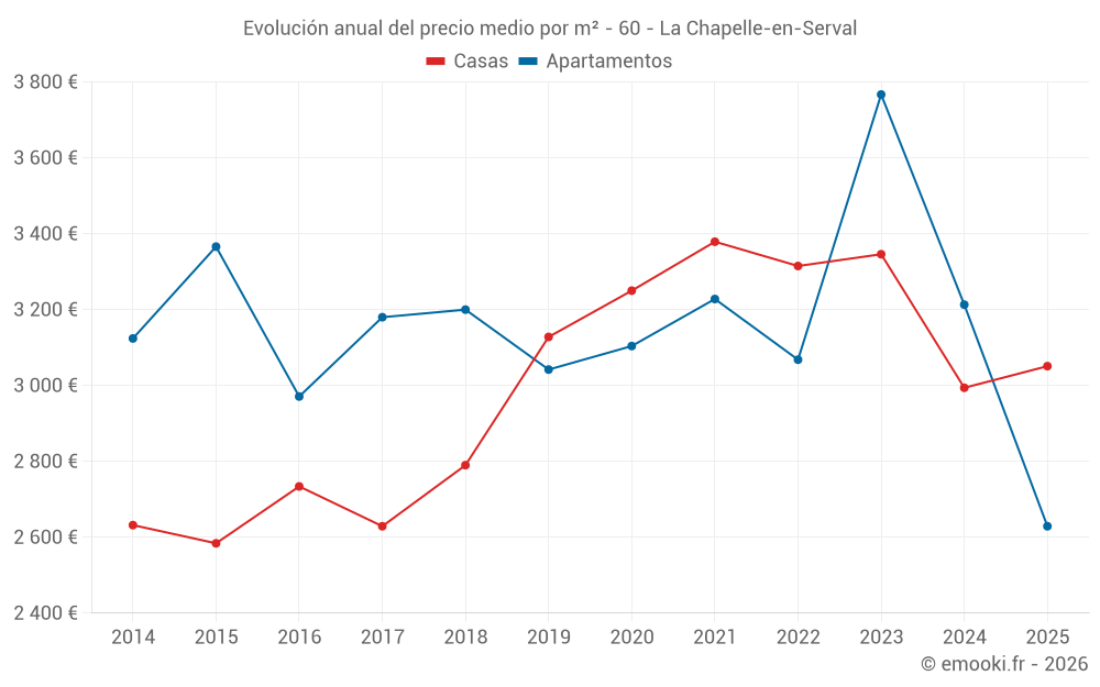 ¿Cuál es el precio por m2 de las casas en La Chapelle-en-Serval?