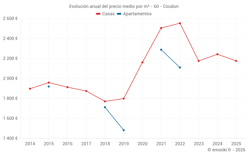 El precio mediano en las 22 transacciones de casas de los últimos 24 meses en la comuna de Coudun fue de 2 182 € por metro cuadrado para un valor patrimonial medio de 192 500 €. Durante este período el 60% de las transacciones estuvieron entre 1 578 y 2 839 € por metro cuadrado (del 2º al 8º decil).