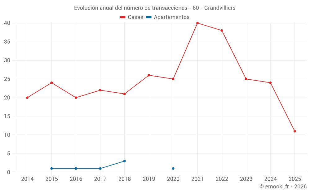El precio mediano en las 25 transacciones de casas de los últimos 12 meses en la comuna de Grandvilliers fue de 1 563 € por metro cuadrado para un valor patrimonial medio de 130 000 €. Durante este período el 60% de las transacciones estuvieron entre 1 045 y 2 053 € por metro cuadrado (del 2º al 8º decil).