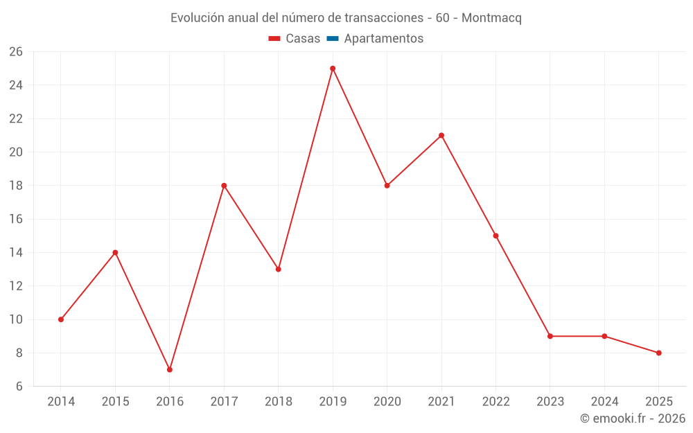 El precio mediano en las 24 transacciones de casas de los últimos 24 meses en la comuna de Montmacq fue de 2 190 € por metro cuadrado para un valor patrimonial medio de 170 475 €. Durante este período el 60% de las transacciones estuvieron entre 1 888 y 2 673 € por metro cuadrado (del 2º al 8º decil).