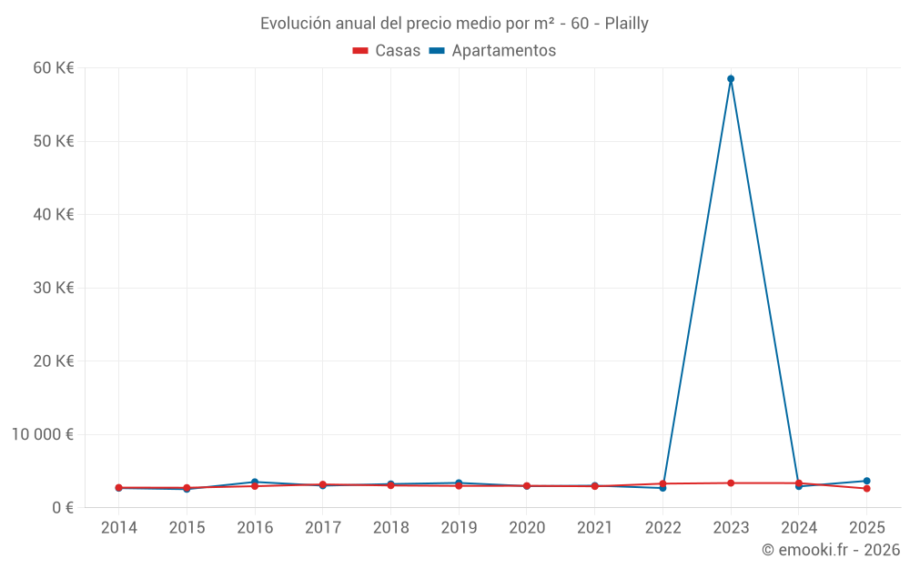 El precio mediano en las 29 transacciones de casas de los últimos 24 meses en la comuna de Plailly fue de 3 321 € por metro cuadrado para un valor patrimonial medio de 340 000 €. Durante este período el 60% de las transacciones estuvieron entre 2 202 y 4 487 € por metro cuadrado (del 2º al 8º decil).