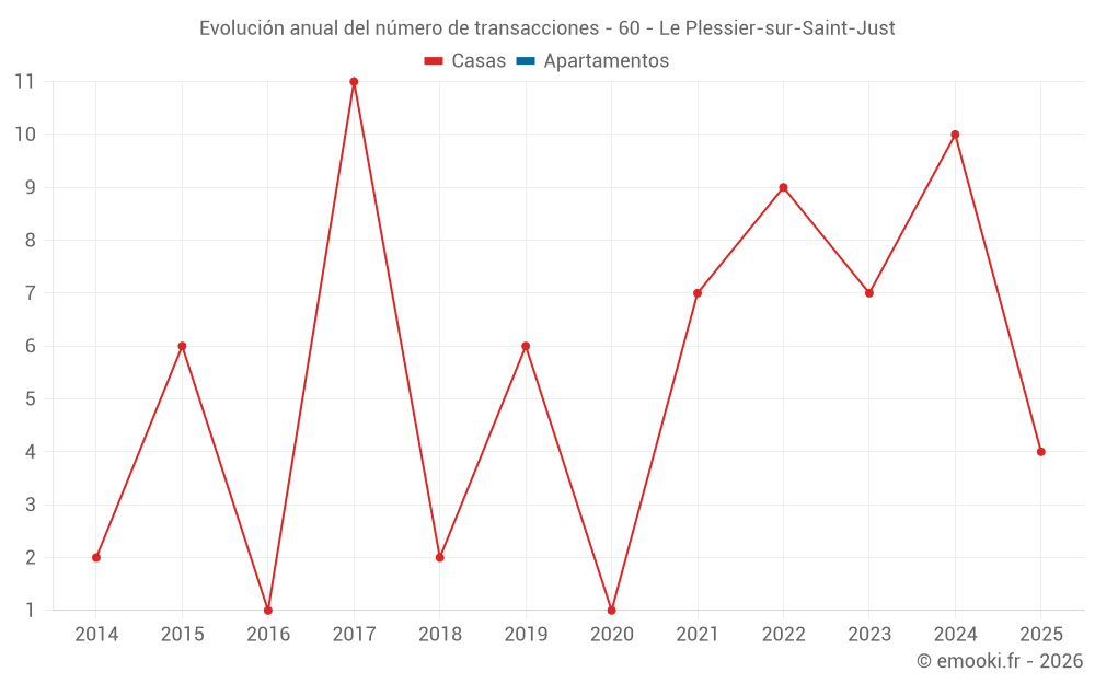 El precio mediano en las 17 transacciones de casas de los últimos 24 meses en la comuna de Le Plessier-sur-Saint-Just fue de 1 798 € por metro cuadrado para un valor patrimonial medio de 145 000 €. Durante este período el 60% de las transacciones estuvieron entre 1 289 y 2 083 € por metro cuadrado (del 2º al 8º decil).