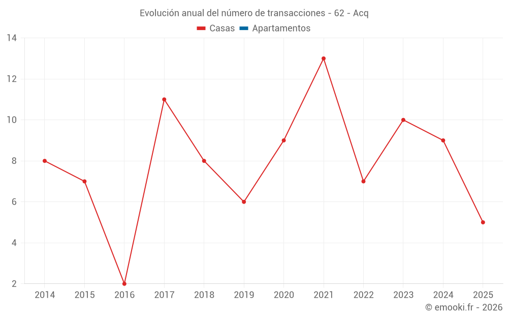 El precio mediano en las 21 transacciones de casas de los últimos 24 meses en la comuna de Acq fue de 2 257 € por metro cuadrado para un valor patrimonial medio de 250 000 €. Durante este período el 60% de las transacciones estuvieron entre 1 540 y 2 620 € por metro cuadrado (del 2º al 8º decil).