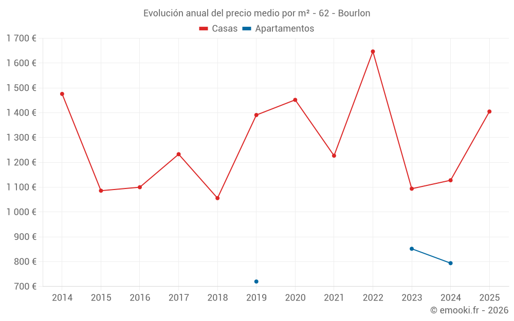 El precio mediano en las 18 transacciones de casas de los últimos 24 meses en la comuna de Bourlon fue de 1 138 € por metro cuadrado para un valor patrimonial medio de 117 000 €. Durante este período el 60% de las transacciones estuvieron entre 832 y 1 684 € por metro cuadrado (del 2º al 8º decil).