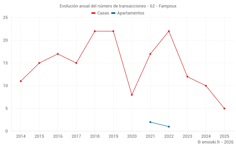 El precio mediano en las 23 transacciones de casas de los últimos 24 meses en la comuna de Fampoux fue de 2 170 € por metro cuadrado para un valor patrimonial medio de 184 700 €. Durante este período el 60% de las transacciones estuvieron entre 1 555 y 2 610 € por metro cuadrado (del 2º al 8º decil).