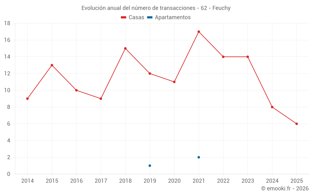 El precio mediano en las 21 transacciones de casas de los últimos 24 meses en la comuna de Feuchy fue de 1 534 € por metro cuadrado para un valor patrimonial medio de 167 000 €. Durante este período el 60% de las transacciones estuvieron entre 1 059 y 2 173 € por metro cuadrado (del 2º al 8º decil).