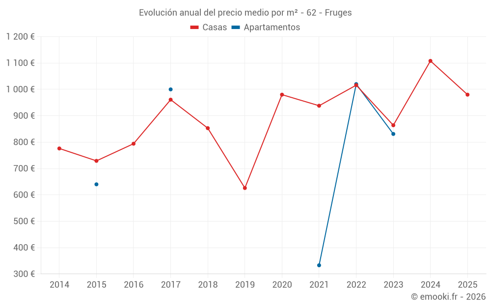 ¿Cuál es el precio por m2 de las casas en Fruges?