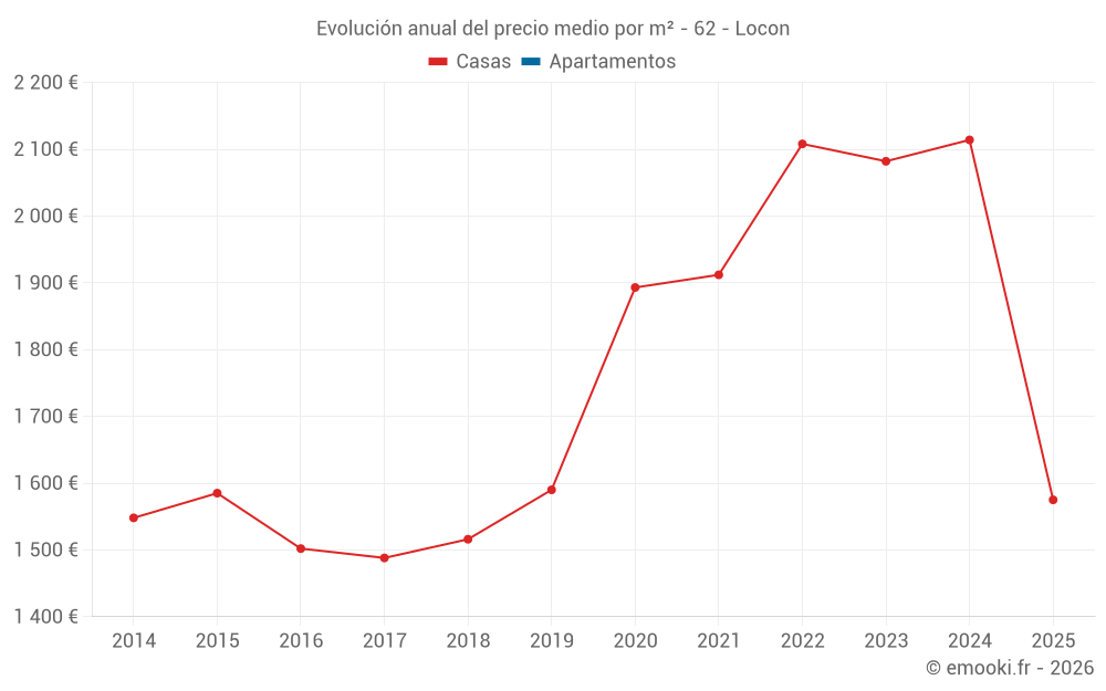 El precio mediano en las 18 transacciones de casas de los últimos 12 meses en la comuna de Locon fue de 1 610 € por metro cuadrado para un valor patrimonial medio de 234 075 €. Durante este período el 60% de las transacciones estuvieron entre 1 102 y 2 442 € por metro cuadrado (del 2º al 8º decil).