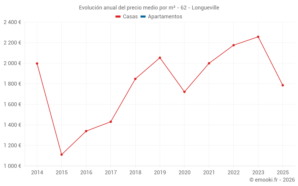 Evolución del precio medio por m² de las casas