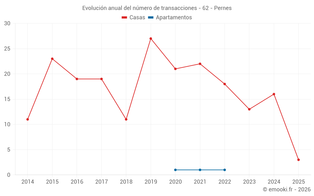 El precio mediano en las 29 transacciones de casas de los últimos 24 meses en la comuna de Pernes fue de 1 179 € por metro cuadrado para un valor patrimonial medio de 112 000 €. Durante este período el 60% de las transacciones estuvieron entre 833 y 1 738 € por metro cuadrado (del 2º al 8º decil).