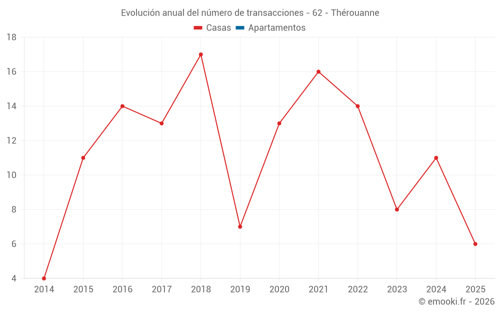 El precio mediano en las 23 transacciones de casas de los últimos 24 meses en la comuna de Thérouanne fue de 1 540 € por metro cuadrado para un valor patrimonial medio de 165 000 €. Durante este período el 60% de las transacciones estuvieron entre 950 y 2 210 € por metro cuadrado (del 2º al 8º decil).