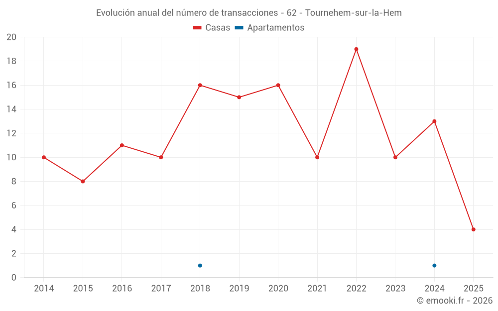 El precio mediano en las 20 transacciones de casas de los últimos 24 meses en la comuna de Tournehem-sur-la-Hem fue de 1 172 € por metro cuadrado para un valor patrimonial medio de 167 875 €. Durante este período el 60% de las transacciones estuvieron entre 918 y 1 740 € por metro cuadrado (del 2º al 8º decil).