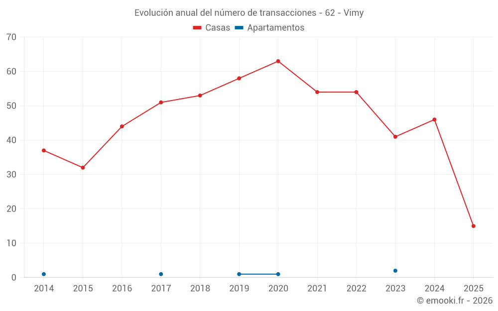 El precio mediano en las 39 transacciones de casas de los últimos 12 meses en la comuna de Vimy fue de 1 968 € por metro cuadrado para un valor patrimonial medio de 170 000 €. Durante este período el 60% de las transacciones estuvieron entre 1 427 y 2 402 € por metro cuadrado (del 2º al 8º decil).