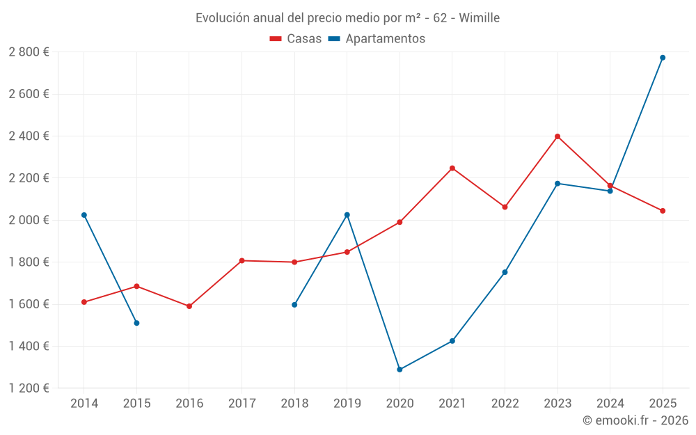 ¿Cuál es el precio por m2 de las casas en Wimille?