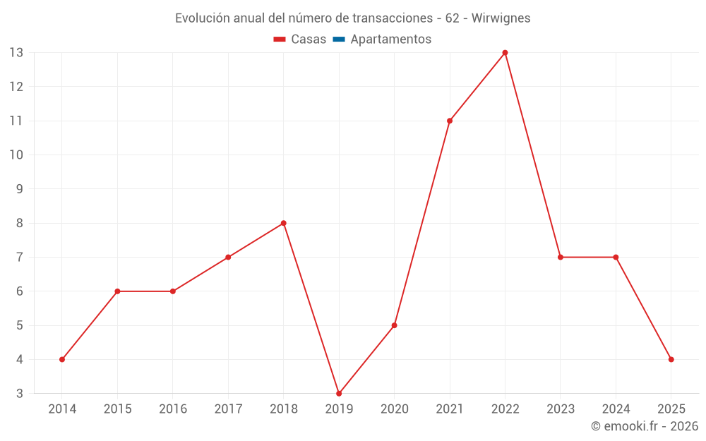 El precio mediano en las 16 transacciones de casas de los últimos 24 meses en la comuna de Wirwignes fue de 1 966 € por metro cuadrado para un valor patrimonial medio de 214 000 €. Durante este período el 60% de las transacciones estuvieron entre 1 679 y 2 439 € por metro cuadrado (del 2º al 8º decil).