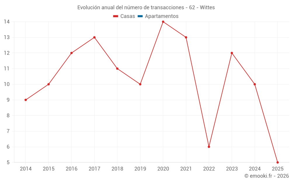 El precio mediano en las 20 transacciones de casas de los últimos 24 meses en la comuna de Wittes fue de 1 904 € por metro cuadrado para un valor patrimonial medio de 216 350 €. Durante este período el 60% de las transacciones estuvieron entre 1 172 y 2 091 € por metro cuadrado (del 2º al 8º decil).