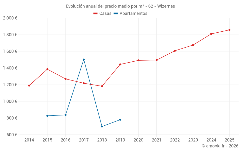 ¿Cuál es el precio por m2 de las casas en Wizernes?