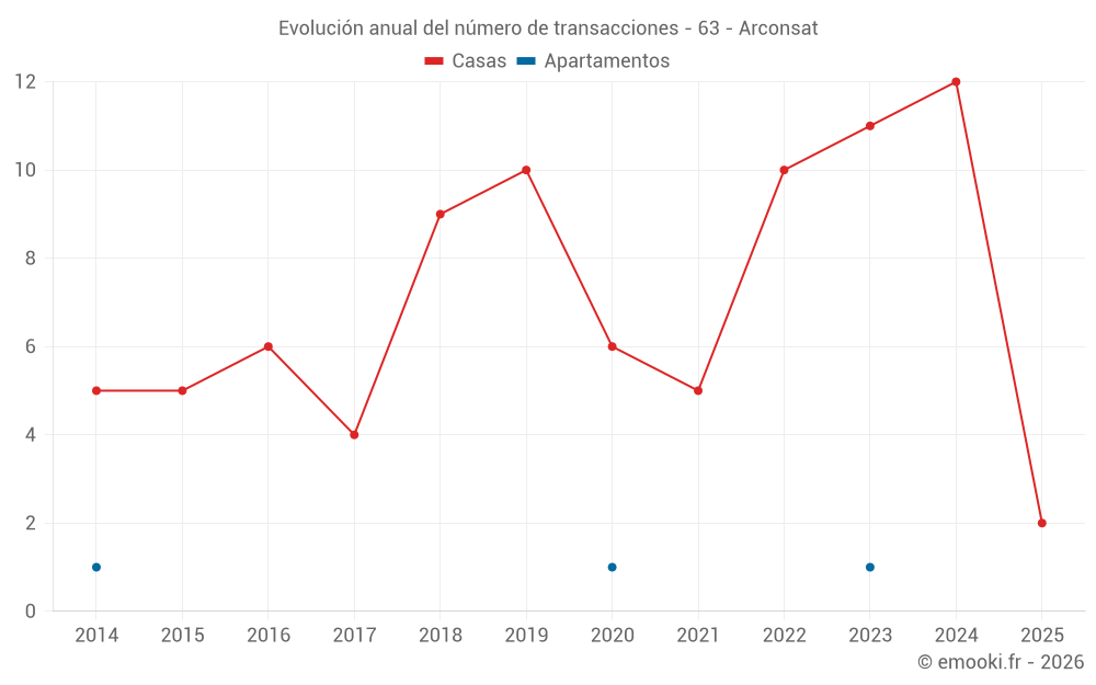 El precio mediano en las 15 transacciones de casas de los últimos 24 meses en la comuna de Arconsat fue de 500 € por metro cuadrado para un valor patrimonial medio de 48 600 €. Durante este período el 60% de las transacciones estuvieron entre 289 y 833 € por metro cuadrado (del 2º al 8º decil).