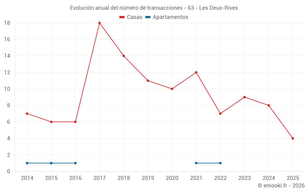 El precio mediano en las 18 transacciones de casas de los últimos 24 meses en la comuna de Les Deux-Rives fue de 2 033 € por metro cuadrado para un valor patrimonial medio de 193 250 €. Durante este período el 60% de las transacciones estuvieron entre 1 437 y 2 362 € por metro cuadrado (del 2º al 8º decil).