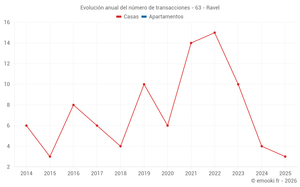 Mapa de precios de la vivienda en la comuna de Ravel, elija una sección para ver las transacciones por parcela.