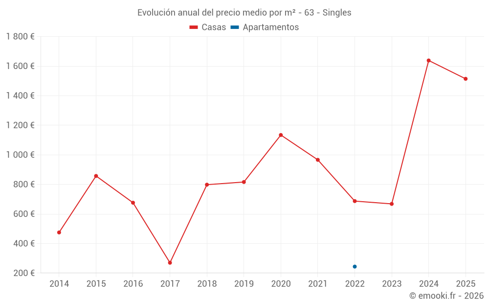 Evolución del precio medio por m² de las casas
