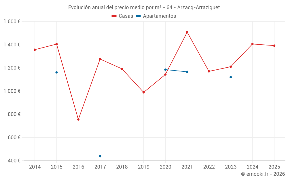 ¿Cuál es el precio por m2 de las casas en Arzacq-Arraziguet?