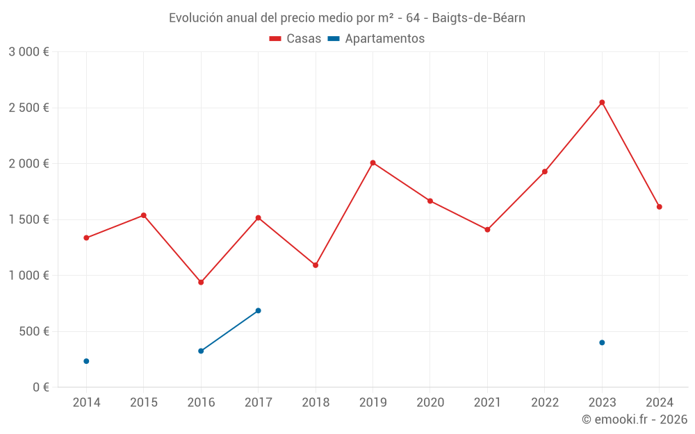 Mapa de precios de la vivienda en la comuna de Baigts-de-Béarn, elija una sección para ver las transacciones por parcela.
