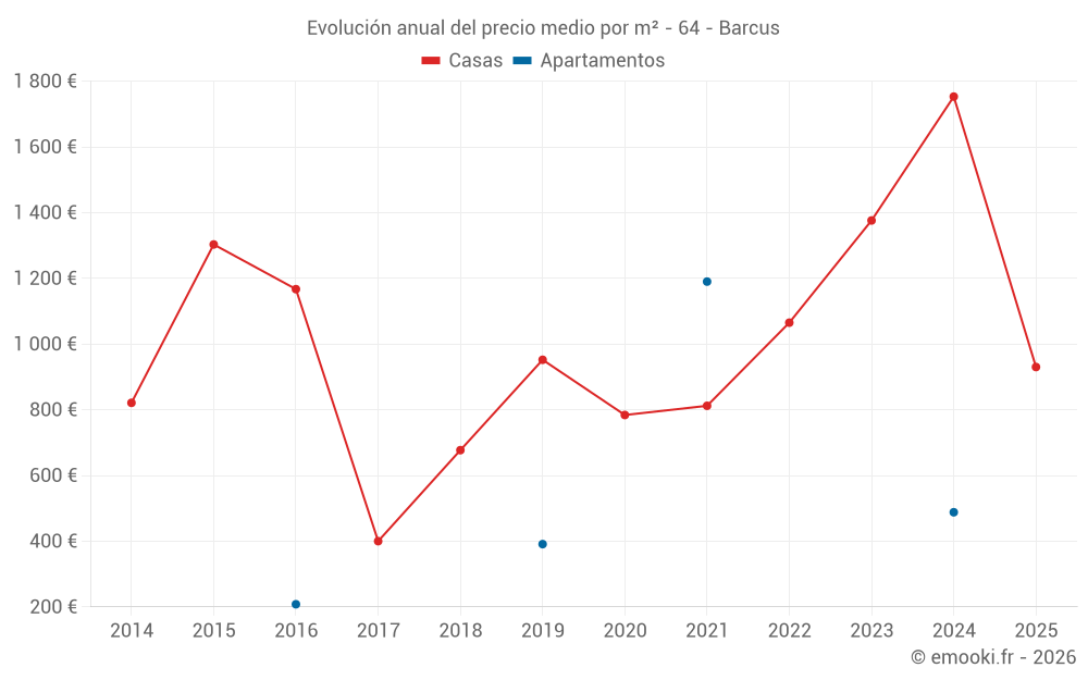 El precio por m² de las casas ha disminuido un 47% desde 1 año, pero ha aumentado un 133% en 8 años.