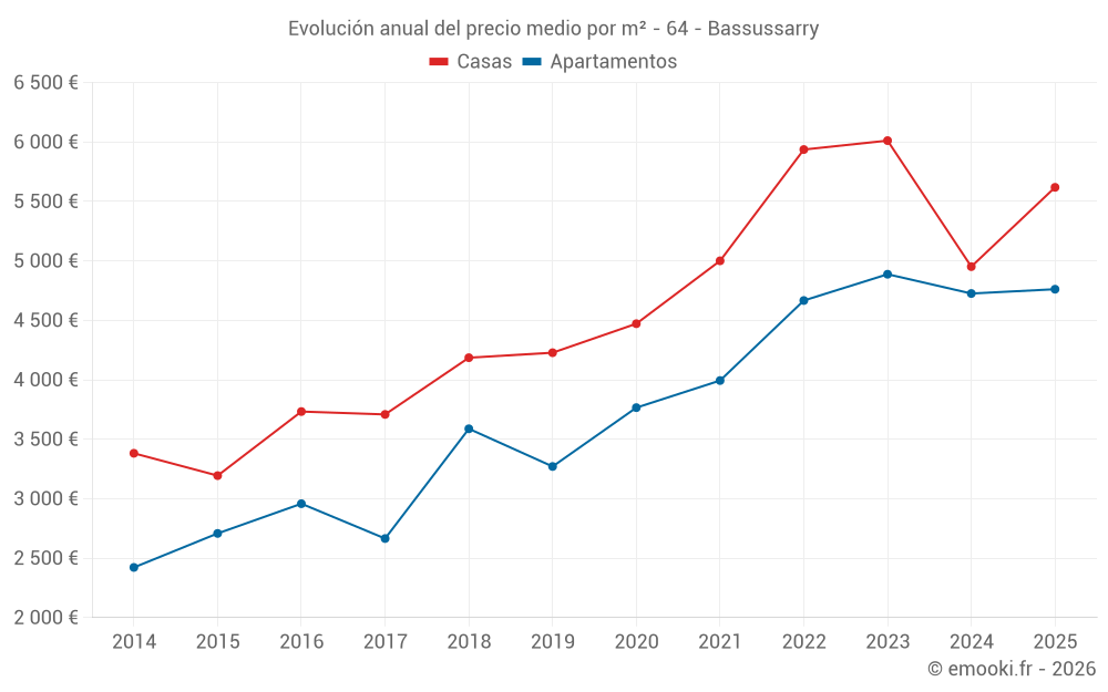 ¿Cuál es el precio por m2 de las casas en Bassussarry?