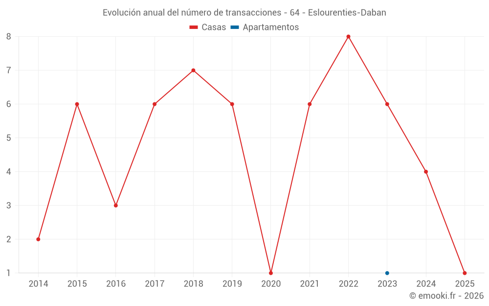 Mapa de precios de la vivienda en la comuna de Eslourenties-Daban, elija una sección para ver las transacciones por parcela.