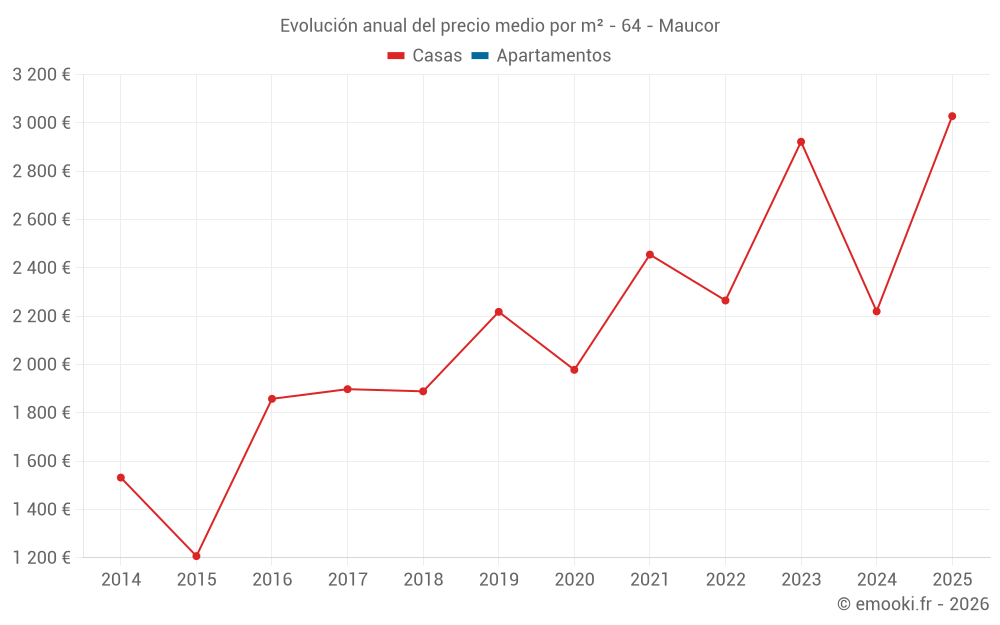 Evolución del precio medio por m² de las casas