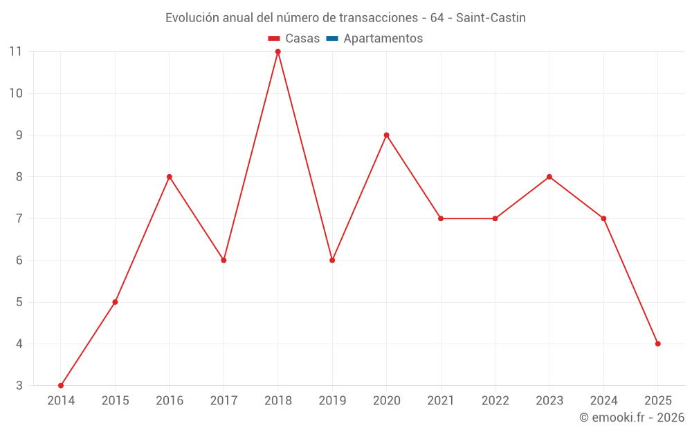 El precio mediano en las 17 transacciones de casas de los últimos 24 meses en la comuna de Saint-Castin fue de 2 228 € por metro cuadrado para un valor patrimonial medio de 284 790 €. Durante este período el 60% de las transacciones estuvieron entre 1 969 y 2 739 € por metro cuadrado (del 2º al 8º decil).