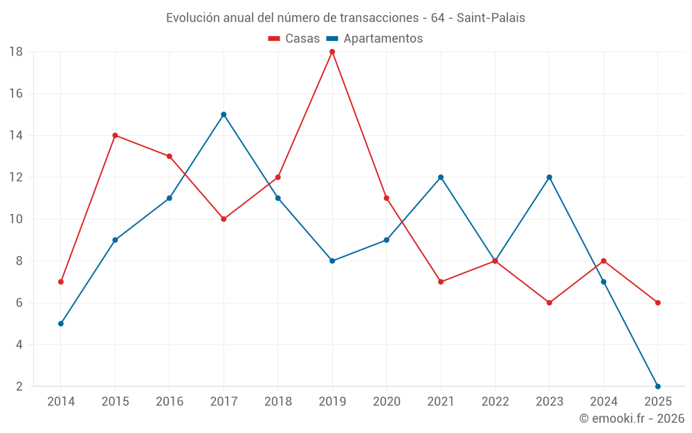 El precio mediano en las 17 transacciones de casas de los últimos 24 meses en la comuna de Saint-Palais fue de 2 160 € por metro cuadrado para un valor patrimonial medio de 220 000 €. Durante este período el 60% de las transacciones estuvieron entre 1 701 y 3 067 € por metro cuadrado (del 2º al 8º decil).