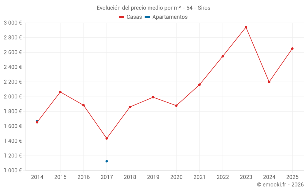Mapa de precios de la vivienda en la comuna de Siros, elija una sección para ver las transacciones por parcela.