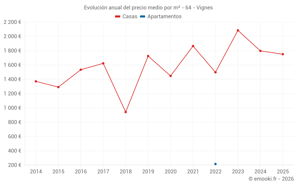 El precio por m² de las casas ha disminuido un 6.1% desde 4 años, pero ha aumentado un 36% en 10 años.